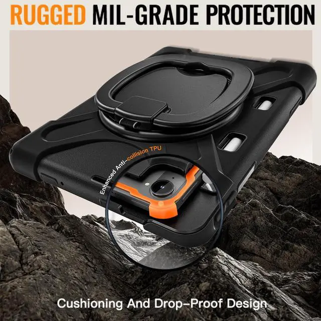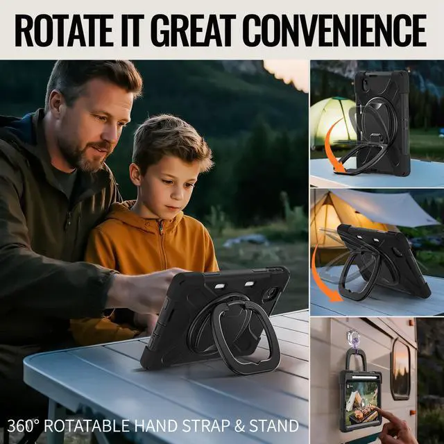 360° ROTATABLE STAND & HAND STRAP - 360°Rotatable foldable stand offers multiple angles for enjoying the most comfortable keyboard-typing, movie-viewing or draw. This sturdy kickstand can be folded when you don't need it. Ergonomically 360°Rotatable adjustable hand strap makes you hold or use your tablet easily in all directions, adjustable velcro hands strap allows big hand and small hand, perfect for kids and adults.