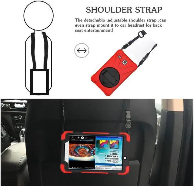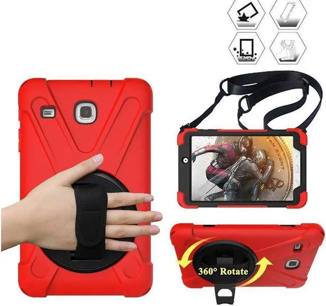 • Samsung Galaxy Tab E 8.0 Case Model SM-T375 SM-T377 SM-T378 Shockproof Protective Cover with Kickstand Hand Strap Shoulder Strap