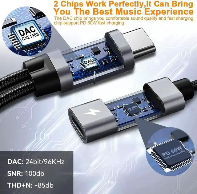 - Interface: USB-C 3.5MM Audio Adapter with PD 60W Fast Charging