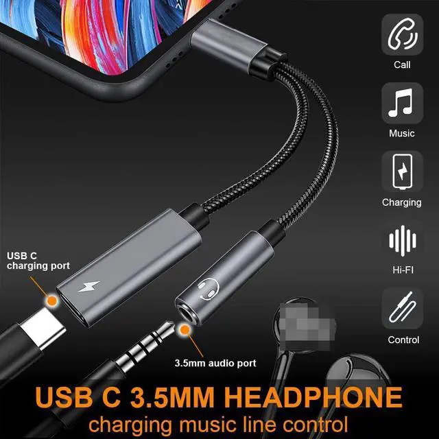 - 1 *2 in 1 USB C to 3.5mm Headphone Jack Adapter charger