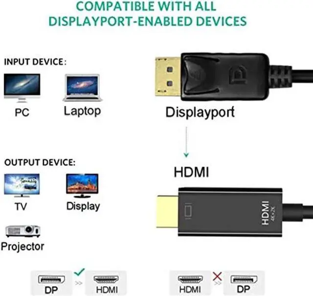2. This isnt a bi-direction cable, it can only transmit from DP port to HDMI port.