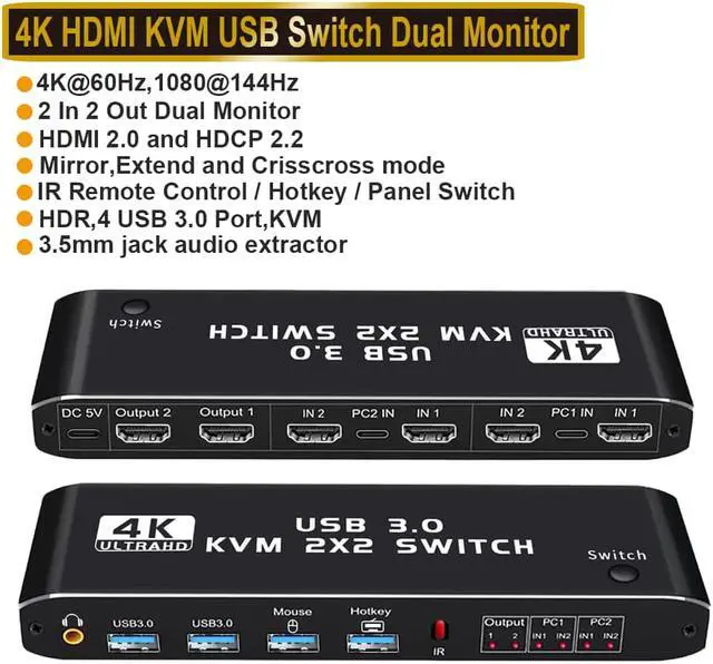 - Product Type: HDMI USB 3.0 KVM Switch (2 in 2 out)