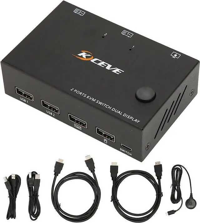 This a HDMI KVM dual monitor switch which can control up to 2 computers or laptops with