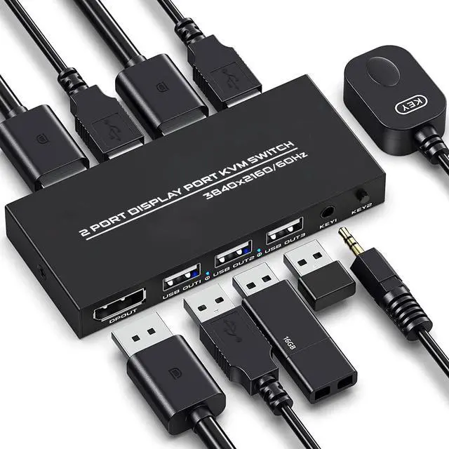 The DP USB KVM Switch Selector for dual Computers Share same set of Keyboard, Mouse, Printer, thumb drive, game machines and HD 4k@60Hz Monitor.