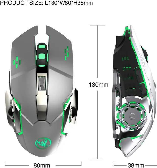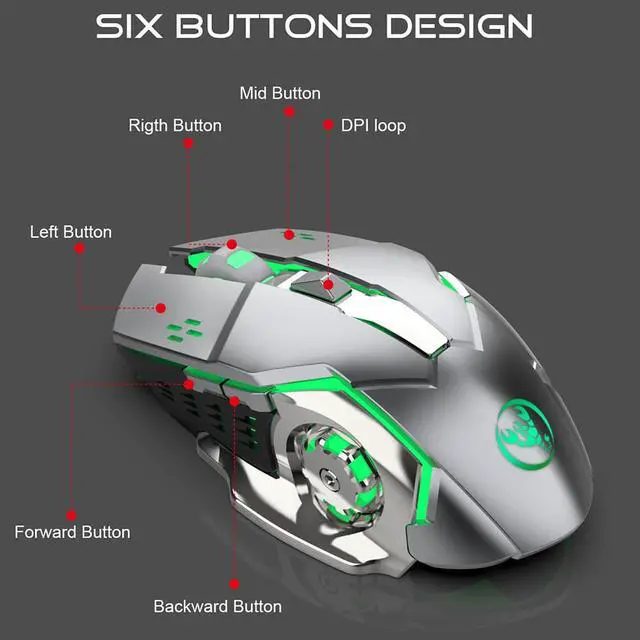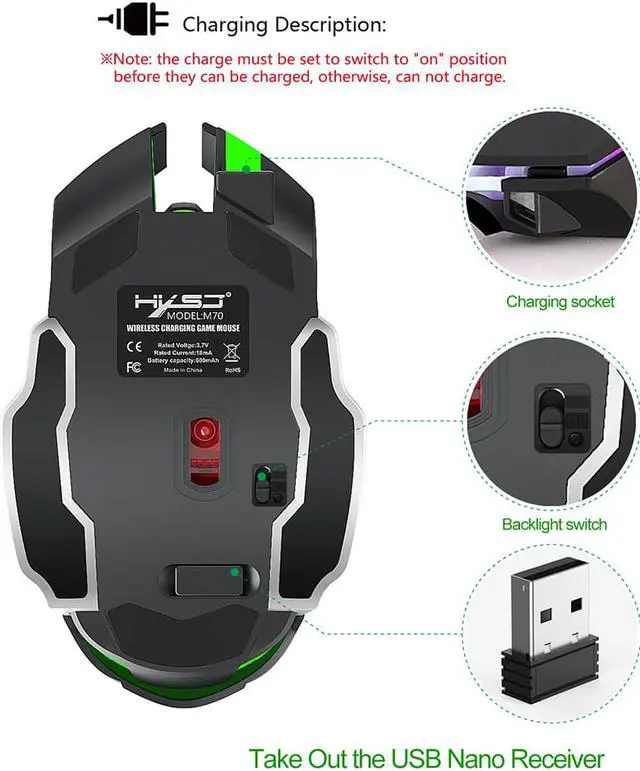 Rechargeable 2.4Ghz Wireless Gaming Mouse with USB Receiver,7 Colors Backlit for MacBook, Computer PC, Laptop (600Mah Lithium Battery)