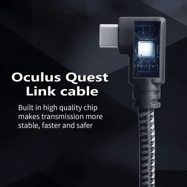 USB C 90 Degree Angle End so it doesn't stick out & is easy to use with the Quest VR headset. VR link cable 16ft is made of premium nylon, adding additional durability and tangle-free, can bear 10000+ bending test.