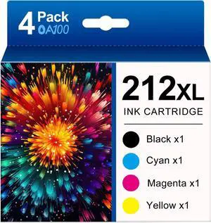 212XL 212 Ink Remanufactured Ink Cartridges Replacement 212 Ink Cartridges for WF-2850 WF-2830 XP-4100 XP-4105 4 Combo Pack High Yield 212 XL