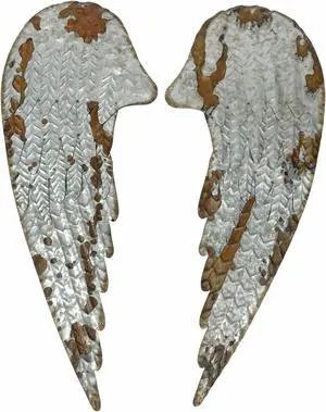 Set of 2 Weathered Galvanized Grey Metal Angel Wings Wall Hangings Measuring 28.5 Inches in Height - Rustic and Unique Decorative Accents for Your Living Space