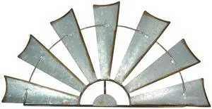 30-Inch Long Rustic Distressed Gray Large Metal Half-Windmill Country Farmhouse Big Wall Sculpture Art Decoration - Easy Mounting - Vintage Galvanized Home Decor