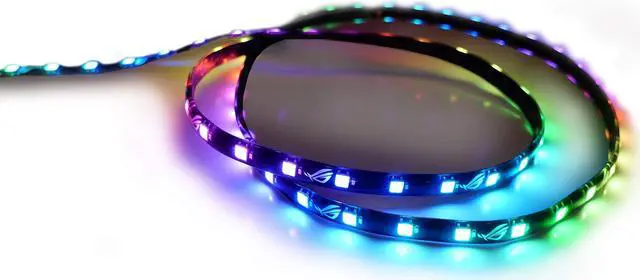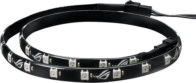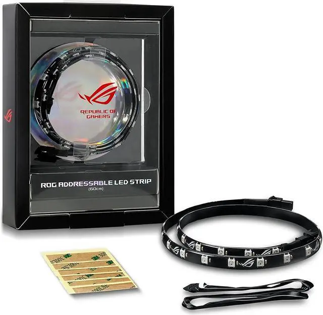 | Specifications | LED Type: RGB 5050 LED Power Consumption: ROG Addressable LED Strip-60cm: 9W Contents: 1 x ROG Addressable LED Strip 1 x Extension cable for ASUS motherboard 3-pin addressable header 6 x 3M double-coated tape (5cm) |