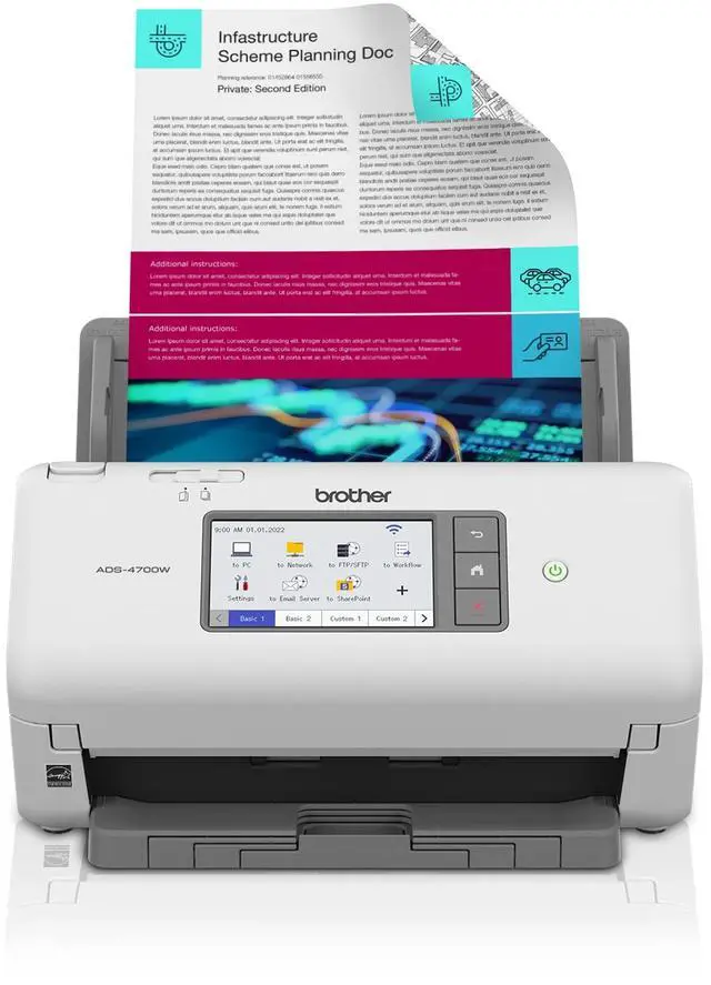4.3" color touchscreen display. Offers easy menu navigation and creation of up to 56 customizable shortcuts for one-touch scanning to common destinations and scan job preview.