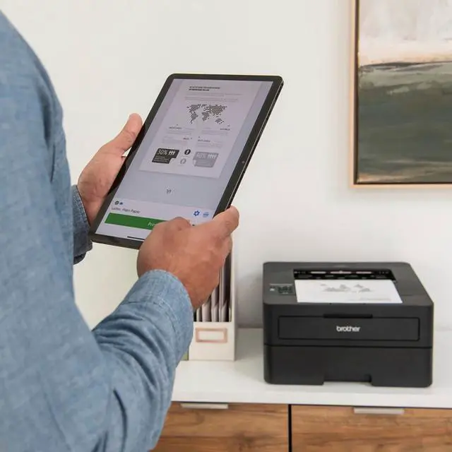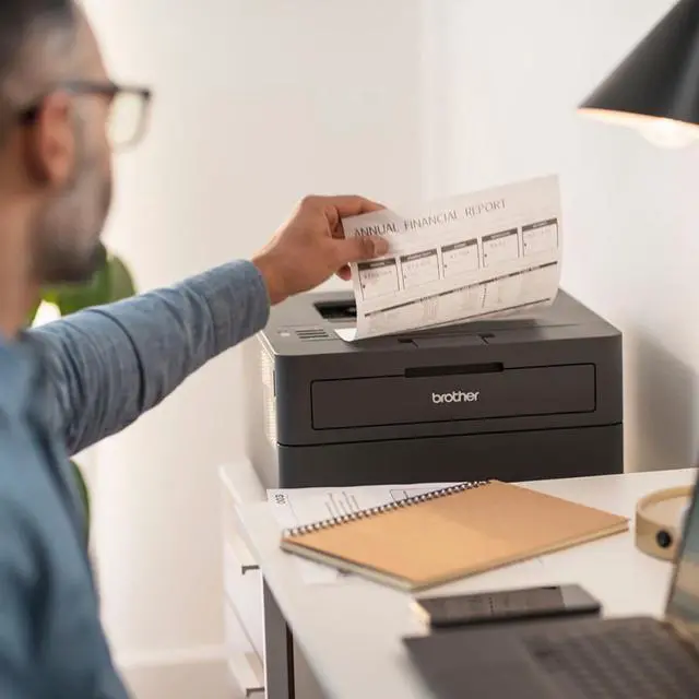 Become a master of efficiency and precision with the HL-L2405W Compact Wireless Monochrome Laser Printer. This high-speed, durable printer is designed for those who value reliability and high-quality monochrome prints. With a high monthly duty cycle of 35, 000 pages, it's perfectly suited for high-volume printing needs, making it an ideal choice for both home and small office environments. Experience the convenience of wireless printing with this compact laser printer's built-in dual-band wireless connectivity ( 2.4GH z / 5GHz). Alternatively, connect locally to a single device via the USB 2.0 interface.