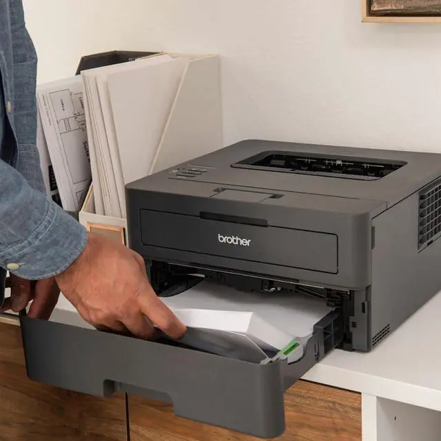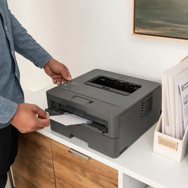 This versatile printer supports AirPrint, USB, and Wi-Fi connections, ensuring seamless printing from virtually anywhere. The HL-L2405W printer boasts a high resolution of 1200 x 1200 dpi, consistently delivering crisp, clear black and white prints. With a print speed of up to 30 pages per minute, you can efficiently manage your printing tasks without compromising on quality. This Brother model features a generous 250-sheet paper tray, reducing the frequency of paper refills and saving you valuable time during your workday. For added flexibility, it also includes a manual feed slot for envelopes and specialty paper.