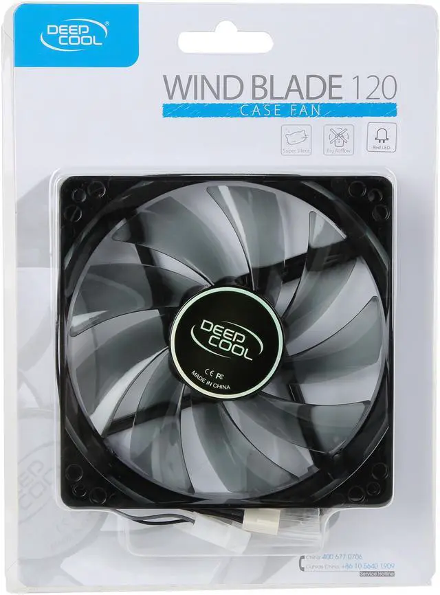 Great for new build or system upgrade, the Deepcool Wind Blade 120 delivers strong airflow and low operation noise everyone craves. This 120mm fan features semi-transparent black blades and four LEDs that illuminate arresting light. It can be mounted in computer case or used with liquid cooler radiator. For power, it connects to your power supply or motherboard via a 3-pin connector.