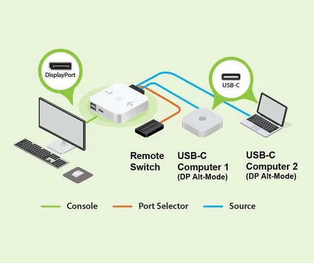 • 2-Port 4K USB-C KVM Switch with DisplayPort output