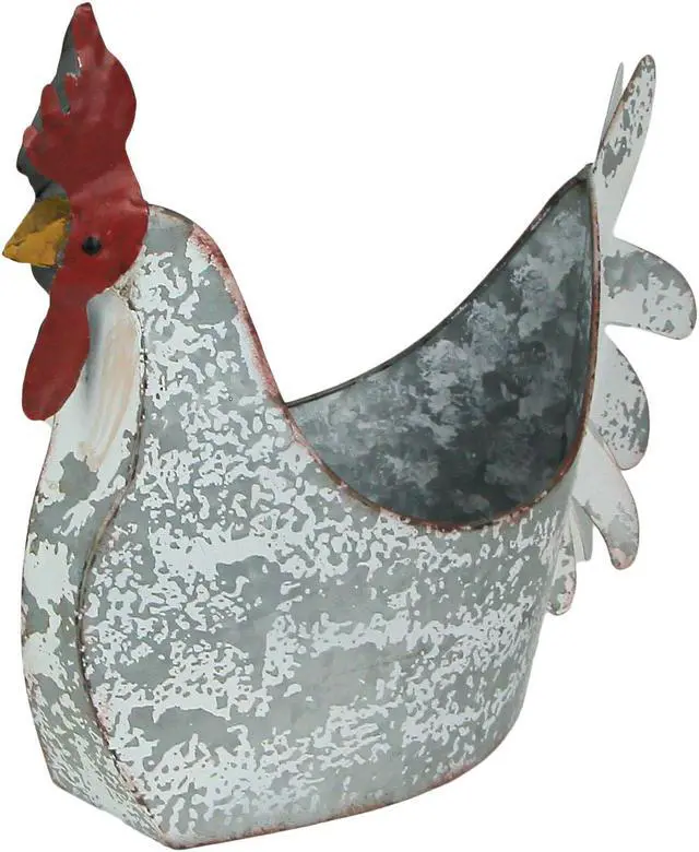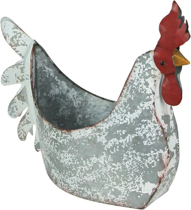 Transform your space with rustic charm using this delightful rooster-shaped planter, perfect for both indoor and outdoor decor. Crafted from durable galvanized metal, this planter boasts a weather-worn painted finish, enhancing its farmhouse allure. Measuring 15.5 inches in length, 13.75 inches in height, and 6.5 inches in width, this versatile piece can be used for various purposes. Whether you adorn it with fresh or faux flowers, or greenery, or utilize it as a storage solution for bath linens or remotes, its functionality knows no bounds. This rustic rooster planter embodies a farmhouse aesthetic, adding character to any room it graces.
