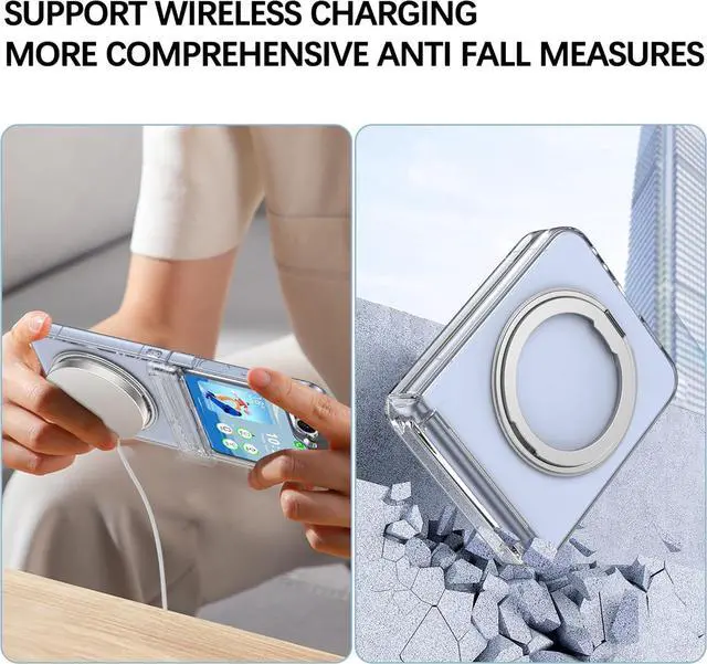 Full Protection --- For Samsung Galaxy Z flip 7 FE/6/5 case protective cover magnetic with unique four-corner drop-proof design & ring stand and screen protctor, provide360° shock,drop and scratch protection for your Flip Z 7 FE/6/5.It made of hard PC is sturdy and lightweight,provide double protedction for your Z Flip 6/5. You could play games or watch videos when you charging your phone,dont worry charge will drop.