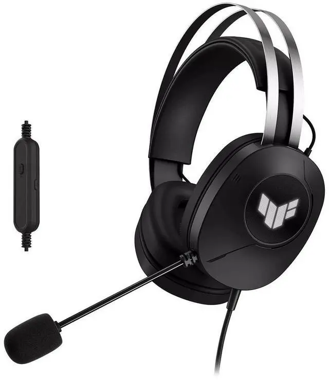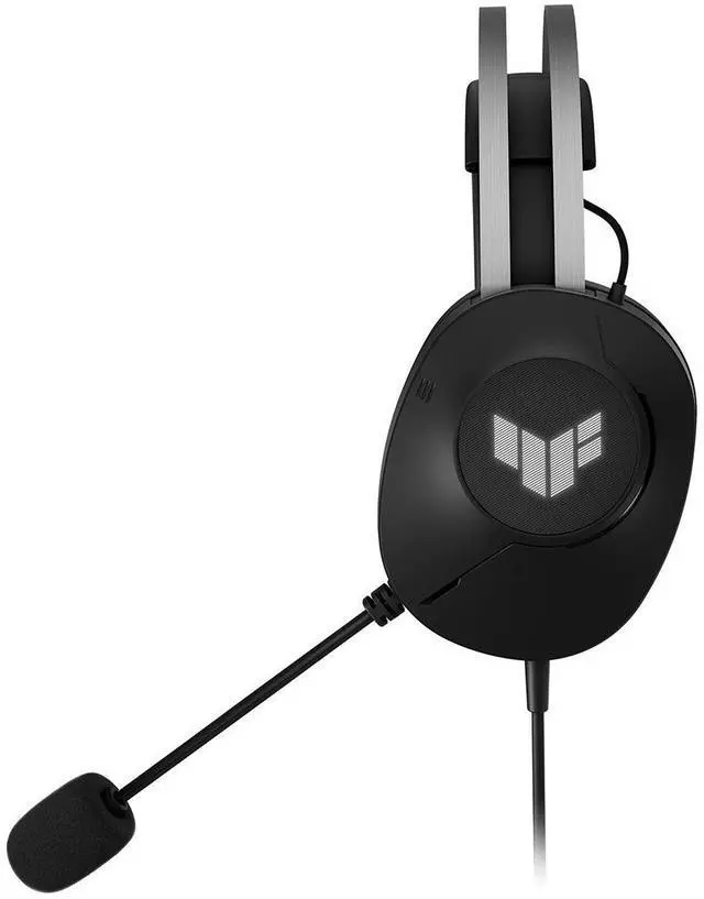 Wired gaming headset with 40 mm ASUS Essence drivers, virtual 7.1 surround sound, TeamSpeak-certified microphone, lightweight 297-gram design, durable ear cushions, plus symbolic TUF logo lighting40 mm ASUS Essence drivers and virtual 7.1 surround sound for immersive in-game audioTeamSpeak-certified unidirectional microphone for clear in-game communicationLightweight 297-gram design with metal suspension headband for comfortable marathon gamingDurable ear cushions are easy to remove and are alcohol- and hypochlorous acid-resistant for easy daily cleaningSymbolic TUF logo lighting adds a distinctive style to any gaming setupUSB Type-A connection for compatibility with PCs and PlayStation (r) 5In-line controls for volume, mic mute, virtual 7.1 surround sound, and lighting on/offLights On.