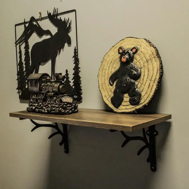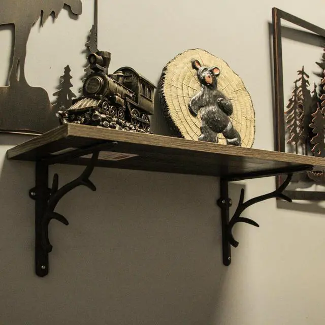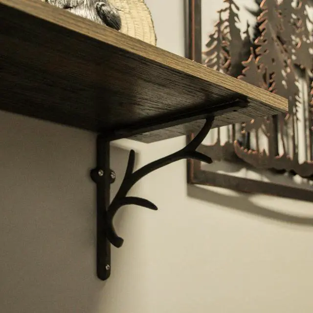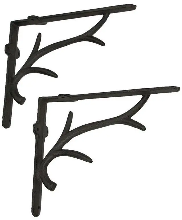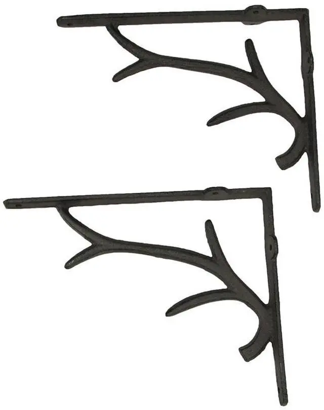 Elevate your decor with our cast iron deer antler brackets, combining sturdiness and style effortlessly. These brackets feature an elegant and airy antler design, adding a touch of wildlife charm to any setting. Their painted brown patina exudes a weathered allure, complementing various decor styles from rustic to modern. With dimensions of 10 inches in length, 8 inches in height, and 2 inches in width, these brackets provide a perfect balance of form and function. Easily install them with pre-drilled mounting holes, although hardware is not included. These versatile pieces can be placed under kitchen cupboards, bar countertops, or fireplace surrounds, enhancing your space with decorative accents.