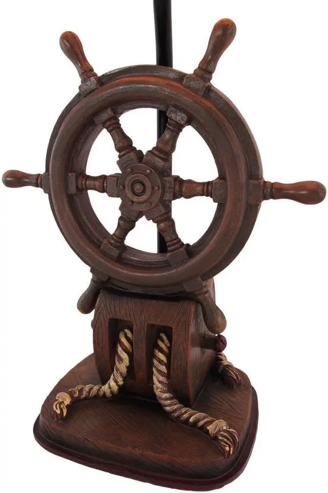 Illuminate your space with a warm, inviting glow using a maximum 45-watt Type A bulb (not included). The lamp is designed with practicality in mind, featuring a convenient thumbwheel switch on the 4 1/2-foot black power cord. Perfect for bedrooms, living rooms, or any coastal-inspired space, this Ship's Wheel Lamp is not just a lighting fixture but a statement piece that captures the essence of beachside living. Whether you're revamping your home decor or seeking an exquisite gift, this lamp is sure to delight nautical enthusiasts and lovers of seaside aesthetics alike, making it an excellent choice for housewarming presents for friends and family.