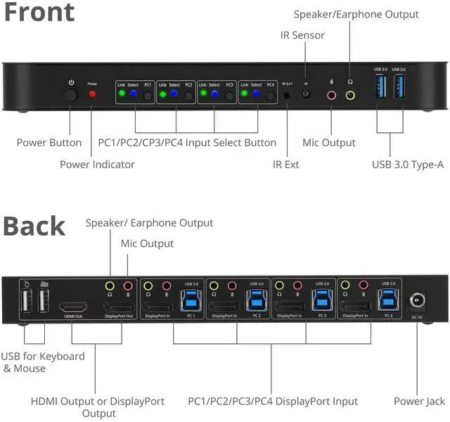 SIIG 4x1 DisplayPort 4K KVM USB 3.0 Switch with Remote Control