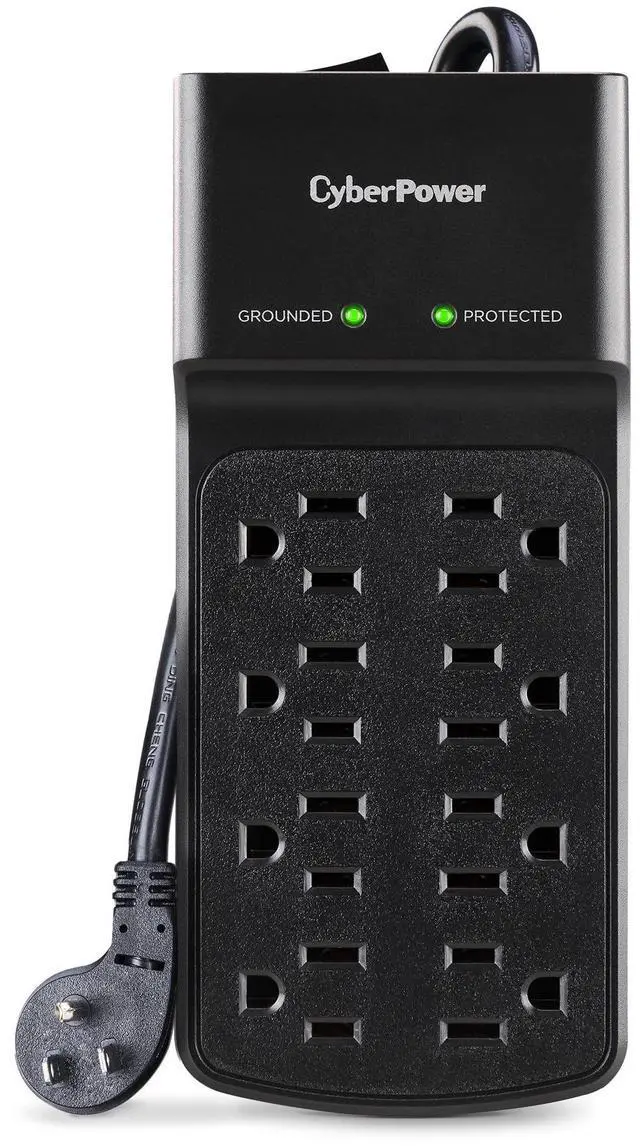 The CyberPower B808 8 outlet surge protector offers a high level of surge protection for common home and office electronics such as computers and peripherals, home theater equipment, and appliances. With 2180 joules of surge protection, the B808 prevents power surges and power spikes caused by storms and electrical grid fluctuations from reaching and potentially harming your valuable electronic equipment. The B808 comes with 8 standard, grounded power outlets and an extra long 8 foot power cord with a low profile grounded plug which fits tightly against walls for unimpeded placement behind furniture.