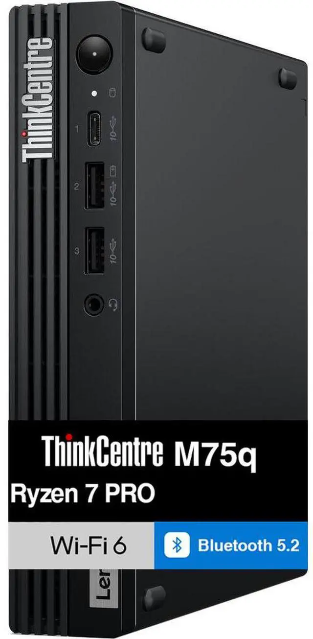 Model: Lenovo ThinkCentre M75qForm/Style: Mini PCProcessor: Zen 4 Gen Ryzen 7 PRO 8700GE 3.60GHz Processor (upto 5.1 GHz, 16MB Cache, 8-Cores, 16-Threads, )Memory: 64GB DDR5 SO-DIMMGraphics: shared Integrated Graphics, Storage: 512GB PCIe SSD (Solid State Drive)Operating System: Windows 11 ProDisplay: Connectivity: 802.11ax Wifi, Bluetooth 5.2, RJ-45Ports/Slots:, 3 USB 2.0, HDMI, 1 Display Port, USB 3.2 Type-C, Headphone/Microphone Combo JackInput/Output:, Black, USB Keyboard, USB Mouse, Battery: 90W PSU, Other Features, Color: BlackWeight: 2.4lbProduct Dimensions (WxLxH): 7 IN x 7.5 IN x 1.4 IN1 Year Manufacturer warranty from Velztorm (Professionally upgraded by Velztorm)