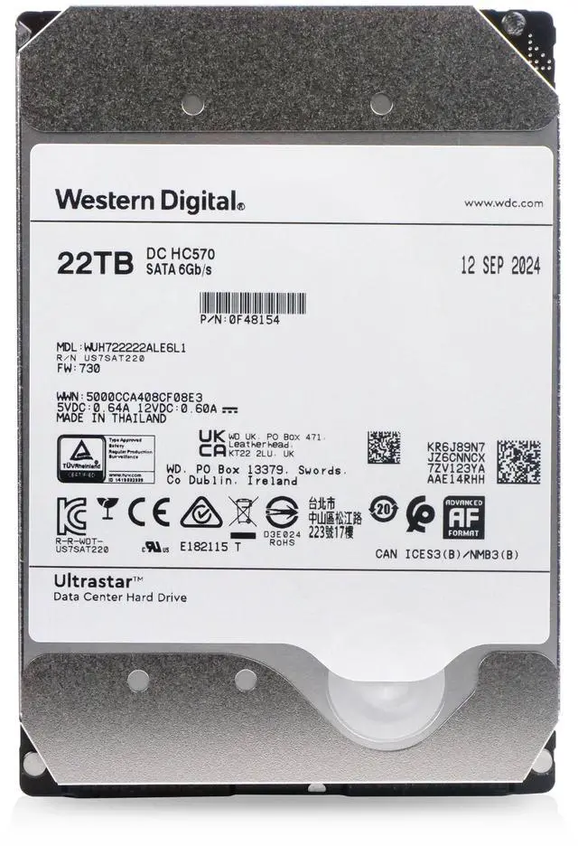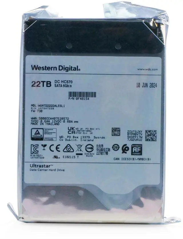 HGST Ultrastar DC HC570 0F48154 22 TB Hard Drive - 3.5" Internal - SATA (SATA/600) - Conventional Magnetic Recording (CMR) Method - 7200rpm - 512e Format