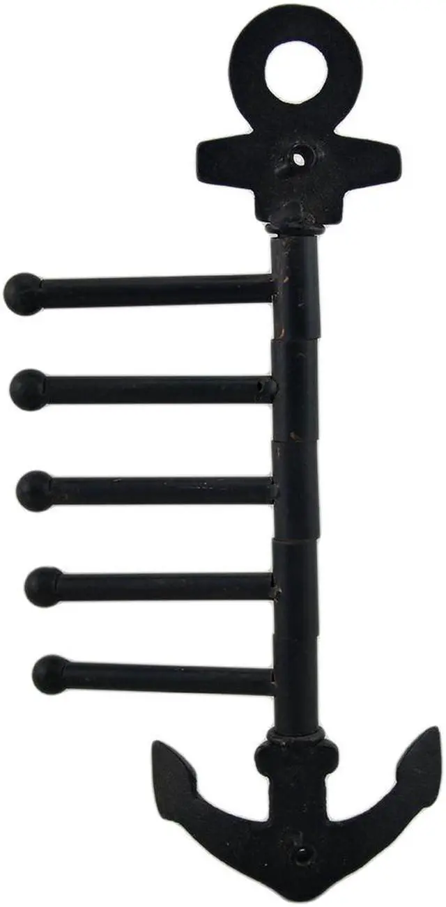 Add a functional nautical accent to your home with this cast iron anchor-shaped wall hook featuring 5 pivoting hooks allowing you to hang a variety of items such as keys, a hat, coat, scarf, and bag near the entry or towels and robes in the bath. It easily mounts to the wall with a pair of screws (not included) and can fold flat against the wall when not in use. This 12.5 -inch high, 4.25 -inch long, 1.5 -inch wide (32x11x4 cm) wall hook is an elegant addition, and is great as a housewarming gift!