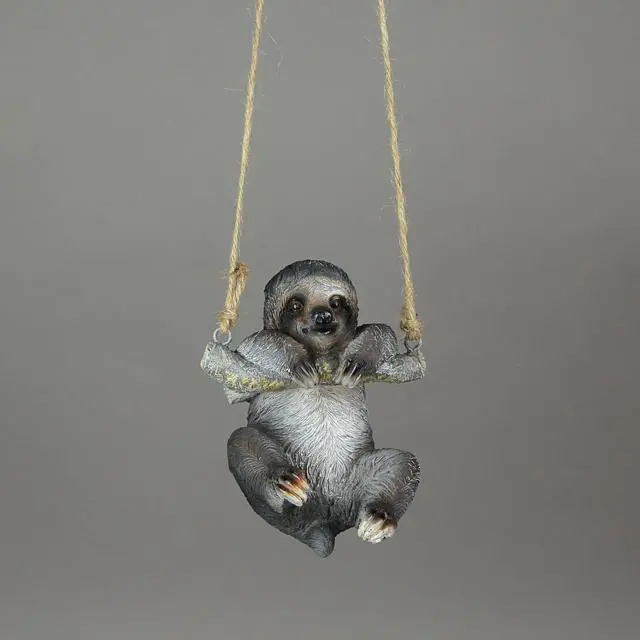 Hand-Painted Resin Sculpture Three-Toed Sloth Hanging Statue With Rope Hanger