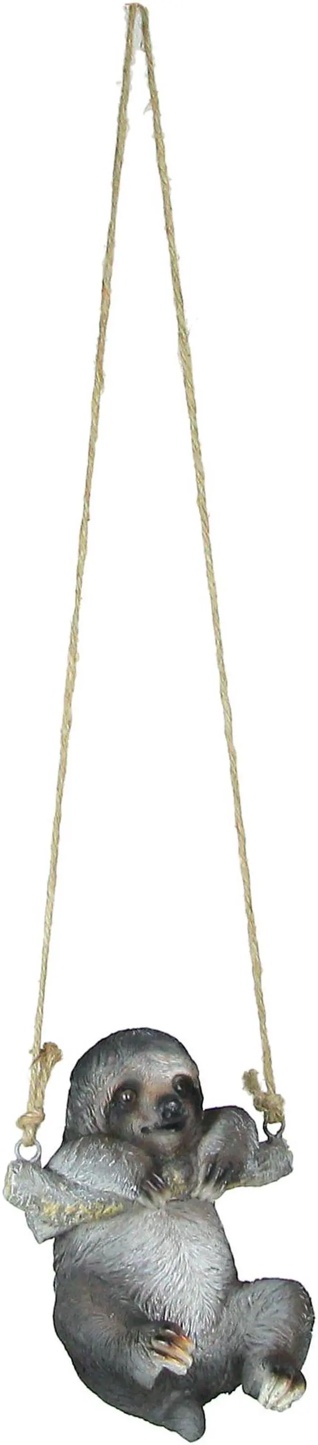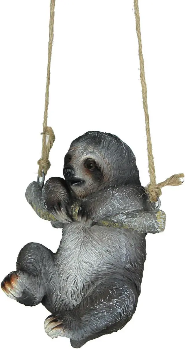 Embrace a slower pace of life with this delightful hanging sloth statue. Crafted of high-quality resin, the statue features a hand-painted finish in brown and gray that really shows off its incredible detail. The sloth measures approximately 5 inches long, 3.75 inches wide, and 6.25 inches high and comes with a natural rope hanger with an approximate 14.75 -inch drop. It's a perfect accent for adding a touch of whimsy to your decor. It makes a great gift for yourself, or your sloth-loving friends and family.