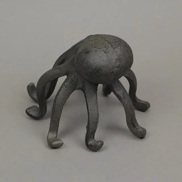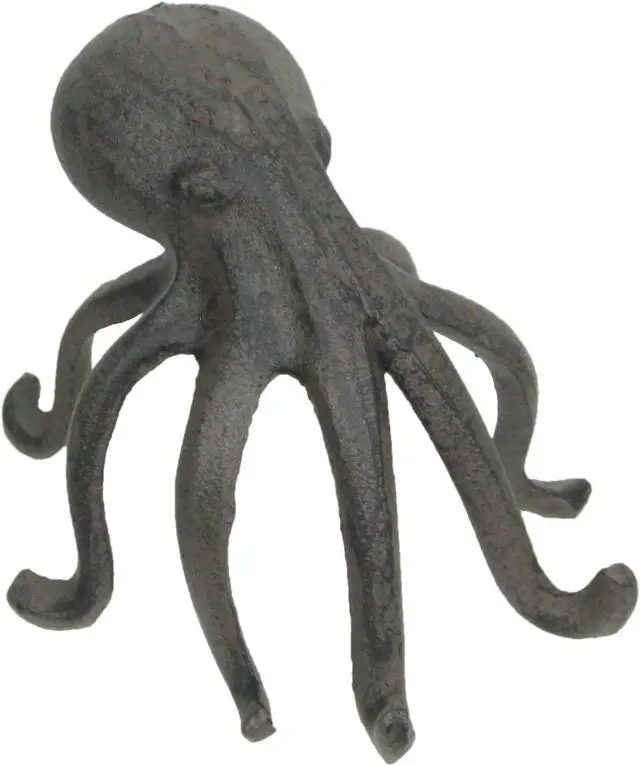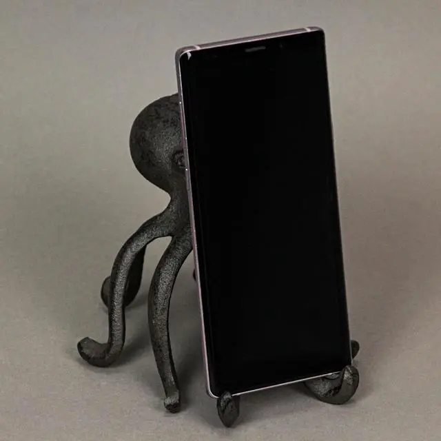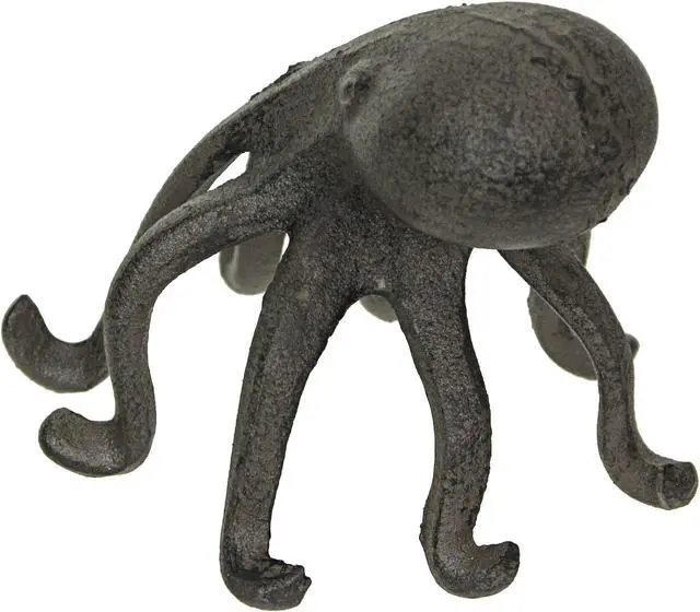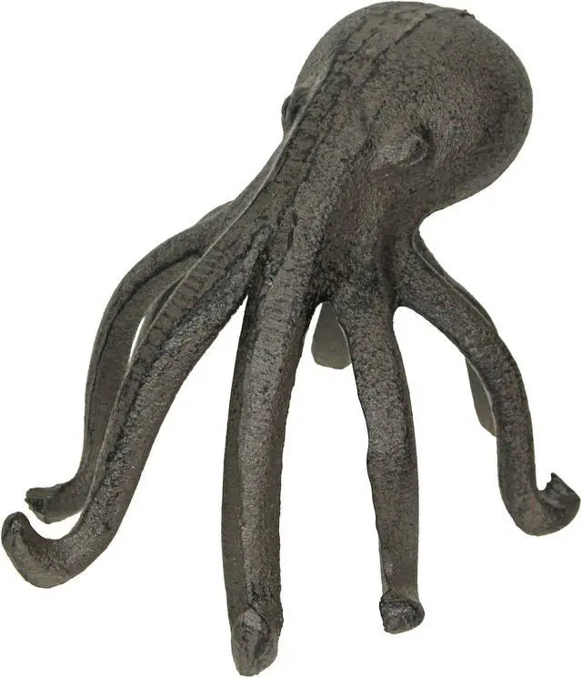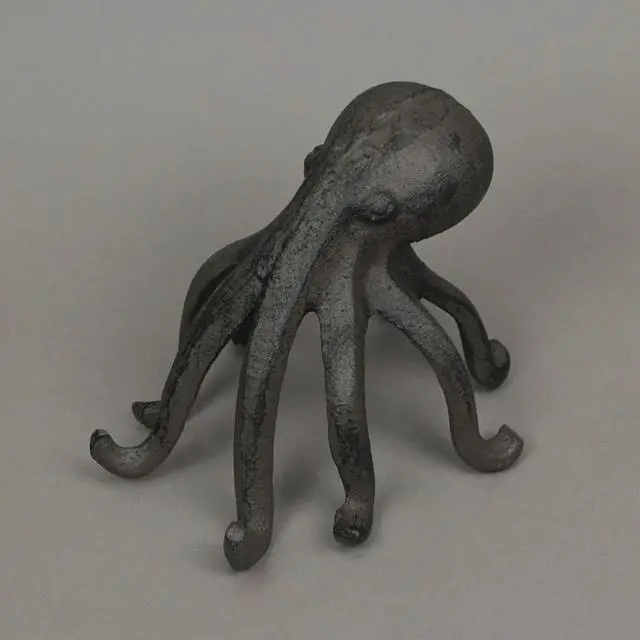 This octopus has plenty of tentacles to hold your books in place or to hold your phone when your hands are busy. Octopi are quite intelligent creatures, and this one proves they can even work their way around a cell phone, or at least display it on a desk or table for you. Artistically created in sturdy cast iron, the brown finish has a wonderfully weathered patina. The octopus stands on its tentacles, curving them outward, making it perfect for use as a bookend, while also providing the perfect place to display your mobile phone.
