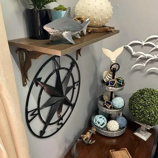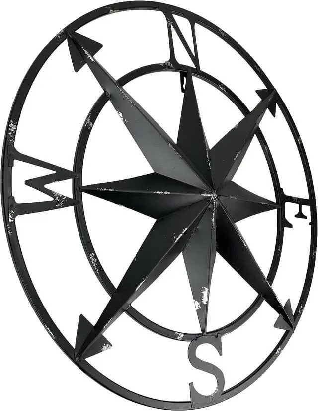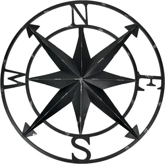 Transform your living space with our exquisite Nautical Compass Rose Wall Hanging, adding timeless charm to your decor. Crafted from durable metal, this decorative piece boasts a stunning three-dimensional center design and a carefully distressed finish, evoking a vintage aesthetic that captures the essence of coastal living. Measuring a generous 20 inches in diameter and protruding an inch from your wall, this wall hanging serves as an eye-catching focal point. Its versatile design allows for effortless installation with a single nail or screw, making it suitable for both indoor and outdoor display.