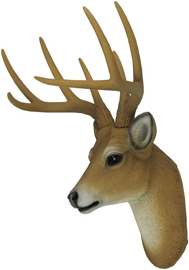 Indulge in the rustic elegance of this impeccably crafted whitetail deer stag head figure, a striking embodiment of lifelike artistry that blurs the lines between faux decor and authentic taxidermy. Each meticulous detail is hand-painted with a brown finish, highlighted by natural textures and hues that echo the real animal, invoking a sense of awe and fascination. The nuanced artistry reaches such heights that it feels as though you could run your fingers over the surface and experience the softness of genuine deer hide. This faux deer head transcends mere decoration, transforming any space into a sanctuary of rustic charm and outdoor allure.