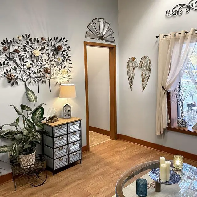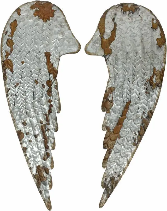 Elevate your living space to heavenly heights with this exquisite pair of angel wings, gracefully adorning your wall. The galvanized finish lends a rustic charm, embodying a weathered patina that exudes timeless elegance. These 28.5 -inch high, 11-inch long, and 0.25 -inch wide wings bring an aura of angelic sophistication to any room, transforming a bland wall into a captivating masterpiece. Crafted with intricate detailing, these wings capture the ethereal essence, adding a touch of celestial beauty to your home decor. Their versatile design allows your creative spirit to soar; arrange them alongside other decorative pieces or frame an art piece above the mantel for a truly divine ambiance.