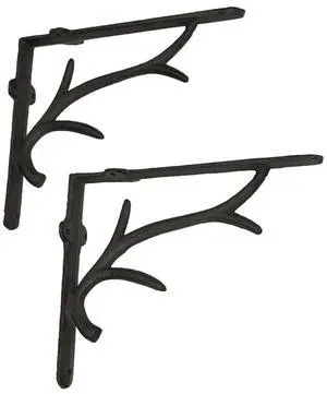 Set of 2 Rustic Brown Cast Iron Deer Antler Wall Shelf Brackets - Western Charm for Home Decor - Sturdy 10 Inches Long Brackets - Elegant and Functional