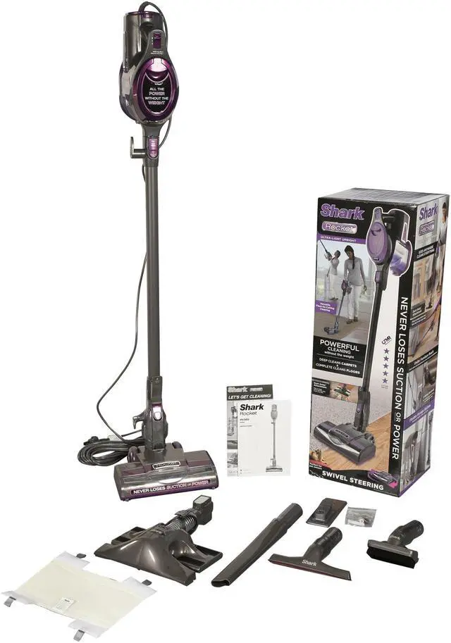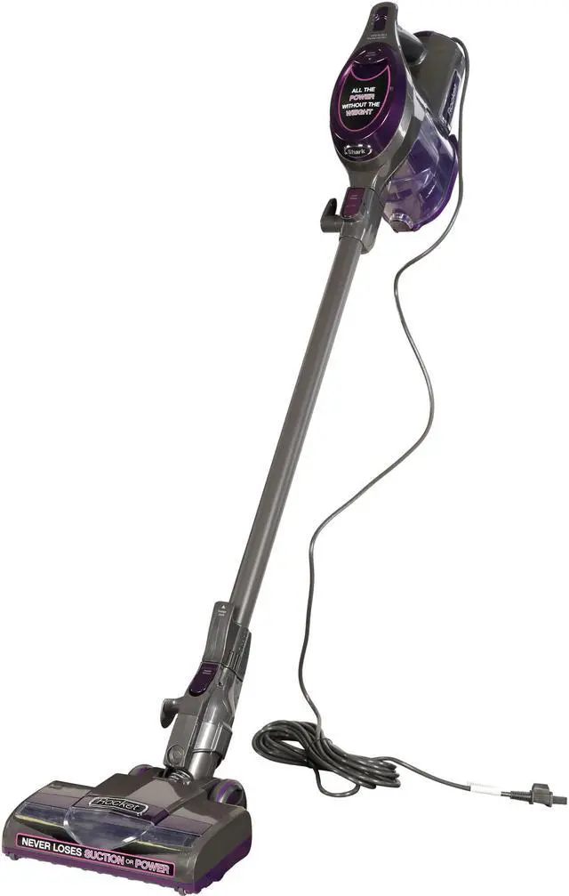 At under 8 pounds, this ultra-lightweight upright vacuum easily converts into a hand vac for versatile floor-to-ceiling cleaning. It's equipped with No Loss of Suction Technology and swivel steering for excellent control when maneuvering around furniture. It offers two storage options, and comes with the Dust-Away hard floor attachment to pick up debris and dust your bare floors.