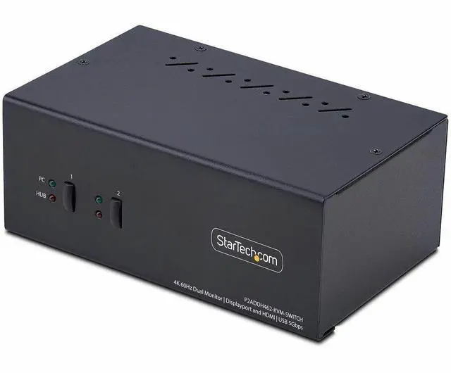 StarTech 2-Port Dual-Monitor DisplayPort and HDMI KVM Switch - 4K 60Hz - 1x HDMI & 1x DP Monitor - 2-Port USB 5Gbps Hub - 2x USB HID Ports - TAA Compliant - P2ADDH462-KVM-SWITCH