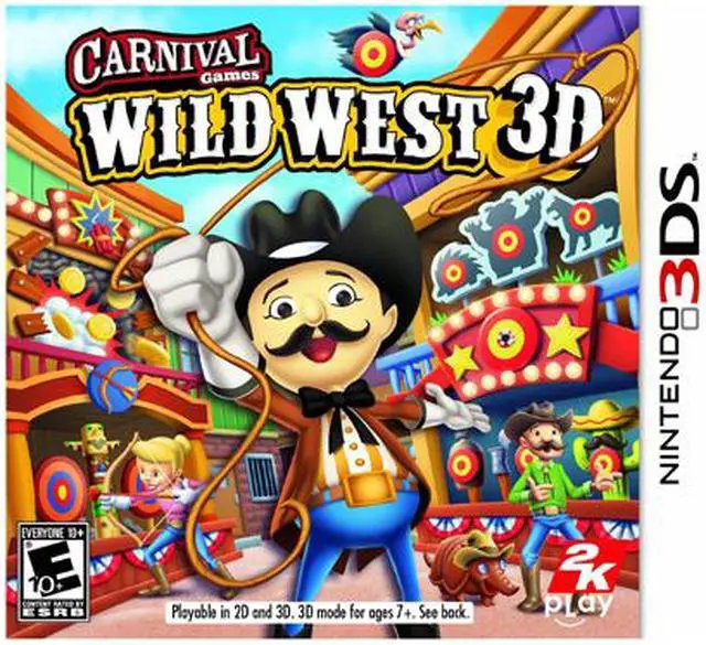 Howdy partner. It's time to switch on your swagger and step right up to Carnival Games: Wild West 3D. You're in for a rootin' tootin' good time as 25 Wild West games and attractions, built from the ground up for the Nintendo 3DS, come to life in eye-poppin' 3D and take full advantage of its motion sensor and gyro sensor system capabilities. Players also will enjoy a range of game features made possible by the Nintendo 3DS' advanced features, including the ability to wirelessly collect in-game currency from other players using StreetPass functionality, digital camera features, and more.