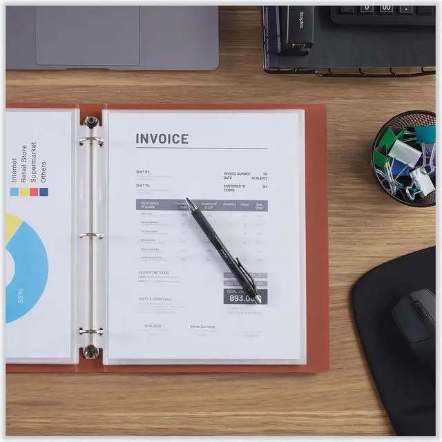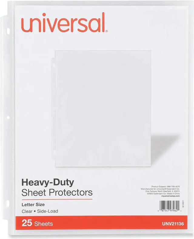 | Features | Heavier gauge sheet protector withstands constant use and provides greater rigidity to inserts. Three-hole punched for 8.5 x 11 inserts. Reinforced edge and holes won't tear or rip even with heavy usage in binders. No photocopy transfer; archival quality. |