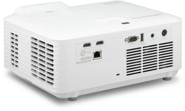 The ViewSonic LSD500HD Laser Projector is 5, 500 ANSI lumens -- built to deliver bright, reliable performance without the hassle of maintenance. Its advanced 3rd Gen Laser Phosphor technology offers up to 30, 000 hours of use, so there are no lamps to replace and less downtime to worry about. With high-impact brightness and a 0.65" DMD chip, it produces sharp text, deep blacks, and vivid colorseven in large rooms with ambient light. It supports 4K HDR content through HDMI 2.0, making visuals more dynamic and lifelike. Instant power on/off and 24/7 operation make it a smart choice for businesses that run all day, such as retail stores, museums, hospitality venues, corporate offices, houses of worship, and golf simulators.