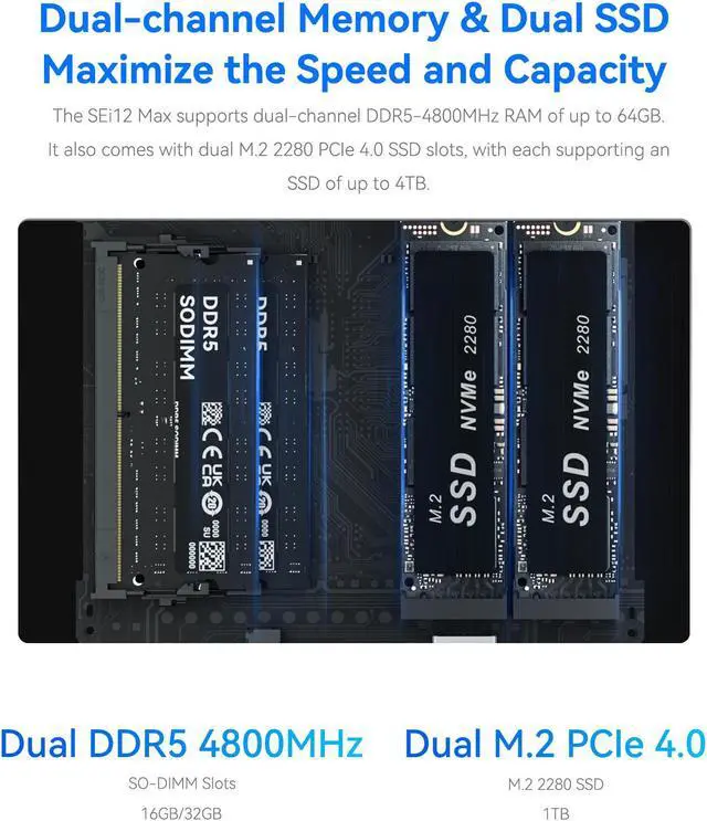 • Memory:SO-DIMM DDR5 4800MHzSlot*2