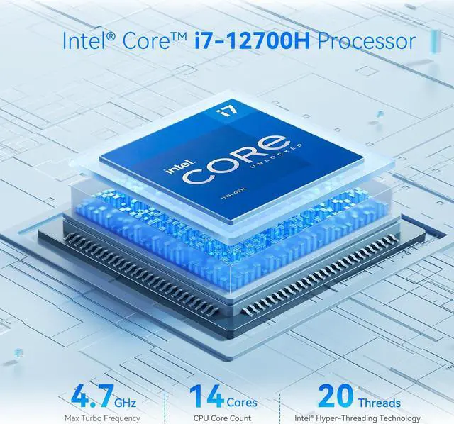 CPU: Intel Core i7-12700H Processor, 4.70GH z Max Turbo Frequency(14C/20T), 24MB Intel Smart Cache