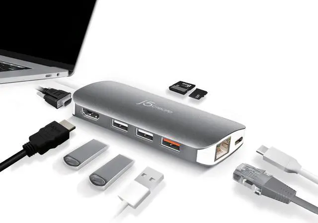 With USB-C™ Power Delivery 3.0, the adapter offers both upstream and downstream charging when connected to a USB-C™ power adapter. It also provides direct access to a wired network and to your SD™ & microSD™ memory cards.