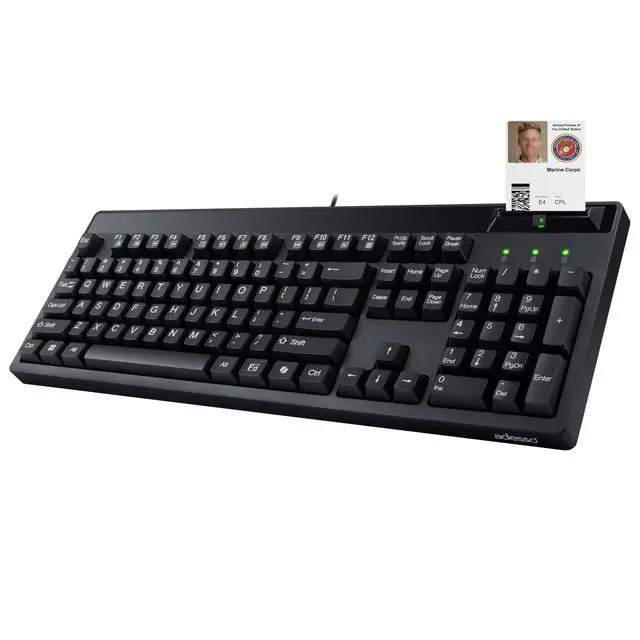 Built-in Smart Card ReaderThe built-in Smart Card Reader brings extra security andease for banking transactions, identification systems, secure web applications, and secure logon. Due to its secure nature, smart card keyboards are extensively used by industries like banking, healthcare, e-commerce, an