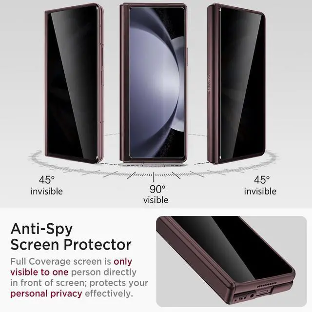 • Privacy Tempered Glass Screen Protector --- With high-quality privacy tempered glass screen protector for Z Fold 5 5G. The screen is only visible to persons directly in front of the screen and does not affect power. Z Fold 5 Privacy Screen will keep all your personal information away from the eyes of strangers around you. Also, providing you shatterproof protection against impacts from any angle. Note: Not fit for Galaxy Z Fold 6.