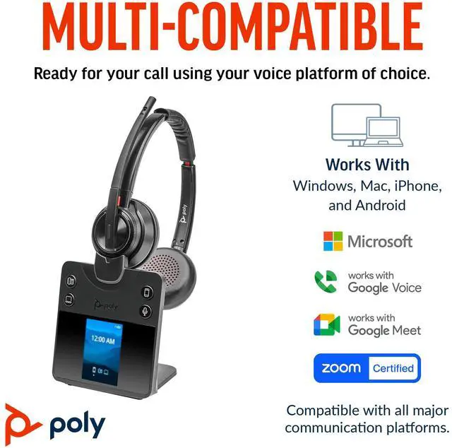 - Noise-canceling mic enhanced with Poly Acoustic Fence technology.