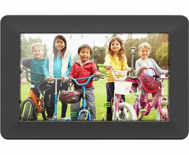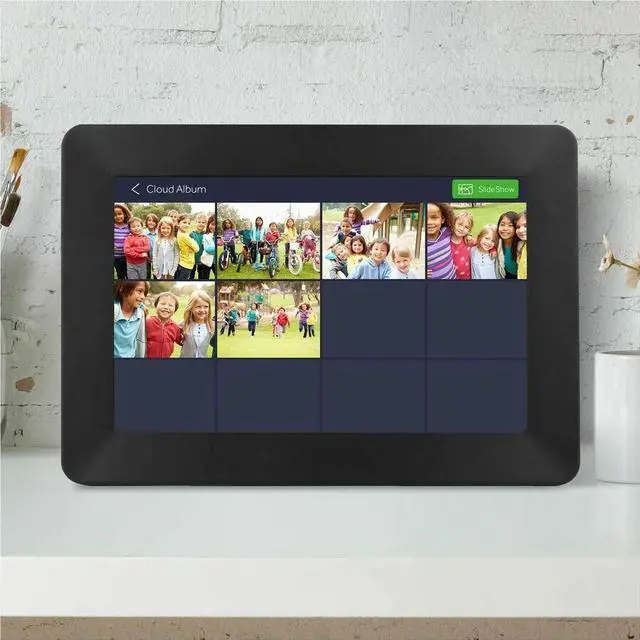 10" Touchscreen DisplayYour photos will be displayed on the IPS LCD screen in 1280 x 800 resolution. Experience incredible image clarity in rich and vibrant colors at an ideal 16:10 aspect ratio. Wireless Photo SharingShare your photos and videos from anywhere in the world with an internet connection through our proprietary smartphone app. No Subscriptions. Multimedia SupportEnjoy photos and videos in slideshow mode set to background music. Features integrated speakers and built-in clock, calendar, weather, and alarm functionality. Store files easily to the frame's 8GB built-in memory. SD Card / USB SupportSimply insert a SD/SDHC/SDXC card or USB flash drive to view your photos directly from these expandable storage peripherals.