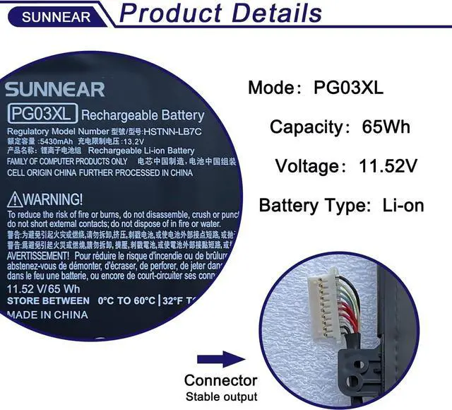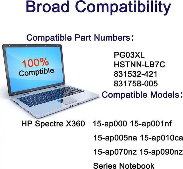 Compatible Part Number: PG03XL HSTNN-LB7C 831532-421 831758-005 831532-422 831731-850 L48430-2C1 PG03064XL TPN-Q168.