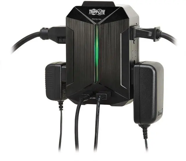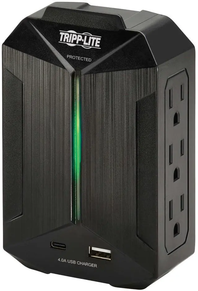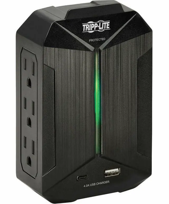 • Tripp Lite Protect It! 6-Outlet Surge Protector - 5-15R Outlets, 2 USB Ports, 5-15P Direct Plug-In, 490 Joules, Black - 6 x NEMA 5-15R - 490 J - 120 V AC Input - USB